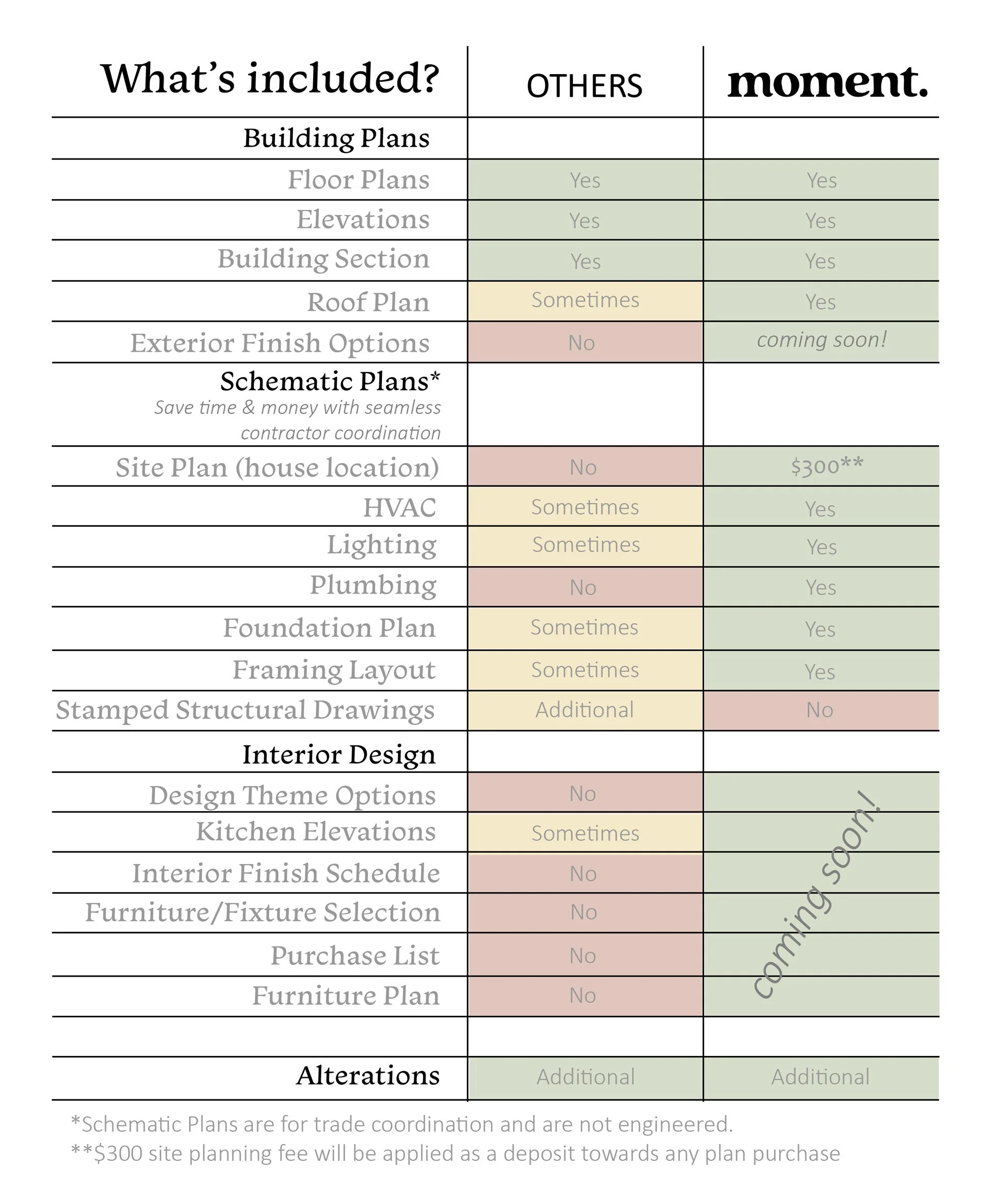 The plans you’re purchasing are intended for your use as construction and permit drawings.  While we can’t include everything for every jurisdiction in the country - the intent is to give you and your team all the information you need to price, permit, and begin construction on your new home.  While these plans are developed by a licensed Architect, some jurisdictions will require a stamp from a local Architect or Engineer to comply with state regulations.  See our Terms and Conditions for more information, and talk to your local Building department to confirm what you need.  This is typical of any pre-designed floorplans you find online, but we take it a step further to help you plan every aspect of your build to help save you time, money, and headache during your build process: